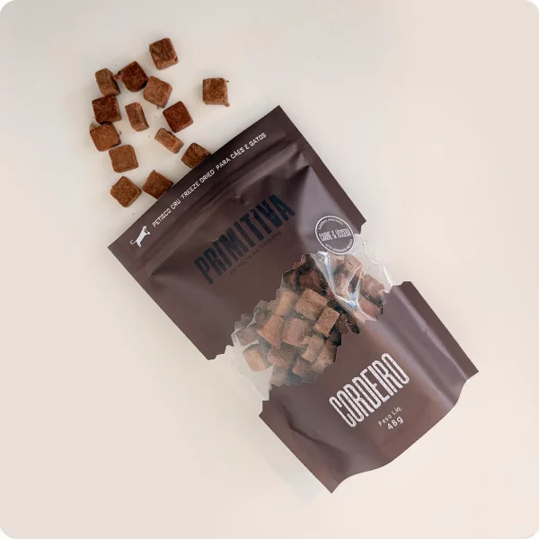 Usamos carne de cordeiro – músculo, coração, pulmão e fígado sem aditivos artificiais, sem farinhas, sem batatas, sem cereais, sem glúten e zero enchimentos.