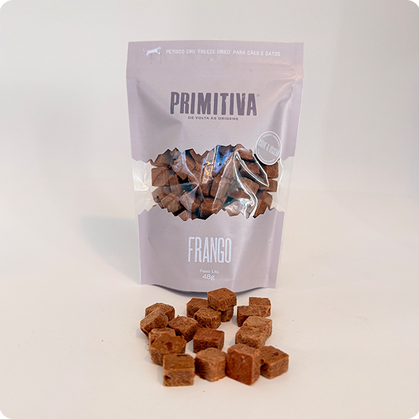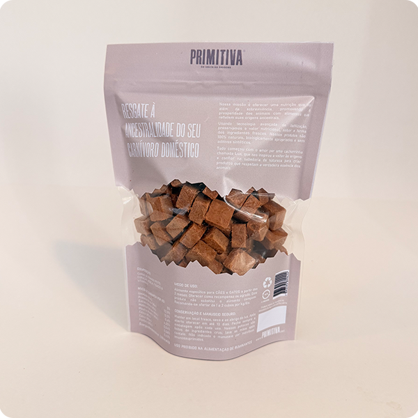 Por isso, a PRIMITIVA vai além do modismo dos petiscos de um único ingrediente: combinamos músculos e vísceras em proporções biológicas, como um carnívoro comeria na natureza. Essa combinação entrega densidade nutricional real, não apenas proteína — mas o espectro completo de aminoácidos, vitaminas, minerais e co-fatores naturais das vísceras.